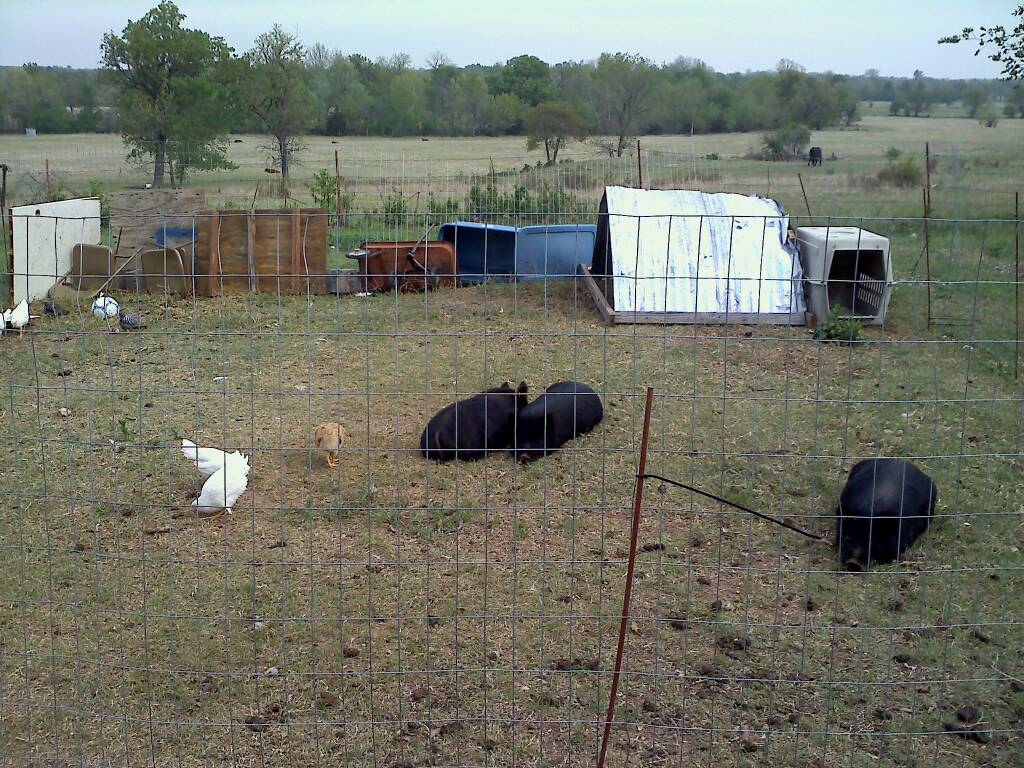 I really haven't wanted to blog for a while. I just didn't know where to begin...or end. So I'll start with the big story and move on to other farm happenings. A few weeks ago, when the blogs stopped, Clark got out. That in and of itself is not uncommon. Clark gets out all the time. Actually, it's more uncommon to find him IN. He has been a pain in the.....well....back because of all the extra fence work we have to do, since he got here. But this time was different. He got out, went down the driveway, across the street, and into the neighbors yard. Apparently he was eating old pecans off the ground. The little girls who live there heard him and told their uncle. Now remember. These girls know and LOVE Clark. They feed him, pet him, and know him They TOLD their uncle it was our pig. Their uncle didn't believe them and thought it was a wild hog. Their uncle shot Clark. He shot Clark twice. Once straight through the nose and once straight through the back, above the front shoulder. He ran all they way home. The girls, very upset, jumped on their 4 wheeler at 10pm and drove across the street, up the driveway and knocked on door hysterically to tell us what happened. We ran out with flash lights to find him. He was breathing heavily with blood coming through his mouth and nose, and from the shoulder wound. There was nothing we could do for him right then. We considered just putting him down, not knowing the extent of his injuries. At the time we didn't' know about the wound to the nose and thought maybe his lungs were compromised. After a long night, we rose with the sun to check him out. He was still alive but had very raspy breathing. However he ate happily and took a mud bath. PERFECT for open wounds. We still considered putting him down because we had not discovered the nose wound. Once we did we put him on antibiotics and b-12. He survived.....and continues to be a pain the .........back. We can't keep him out of the chicken nursery (I haven't blogged about that yet, but I will soon). Needless to say a structure made for baby chickens is not faring well against a 100 lb pig. He has completely destroyed their enclosure. He is scratching himself on the cars too and eating everyone elses food. He's a pest. BUT he hasn't left the property since he got shot. Just fair warning. We are going to erect a new enclosure for Clark this weekend. IF it works....YEAH! If it doesn't......he's going to be breakfast. I'm just sayin'........